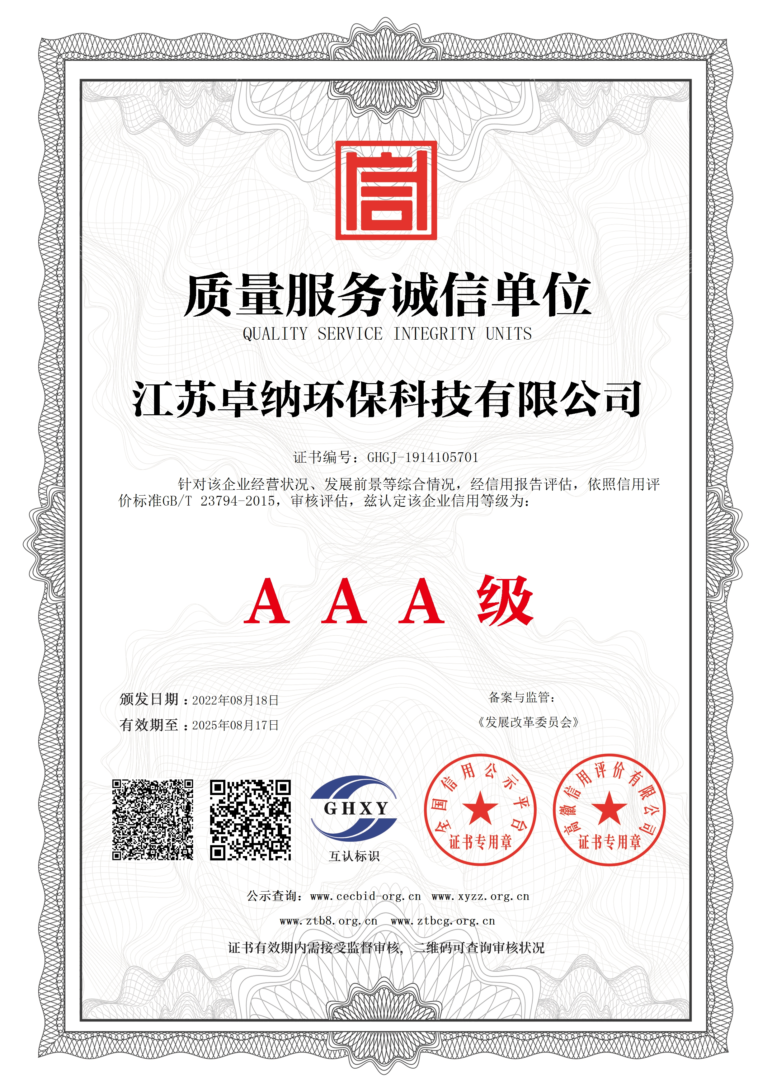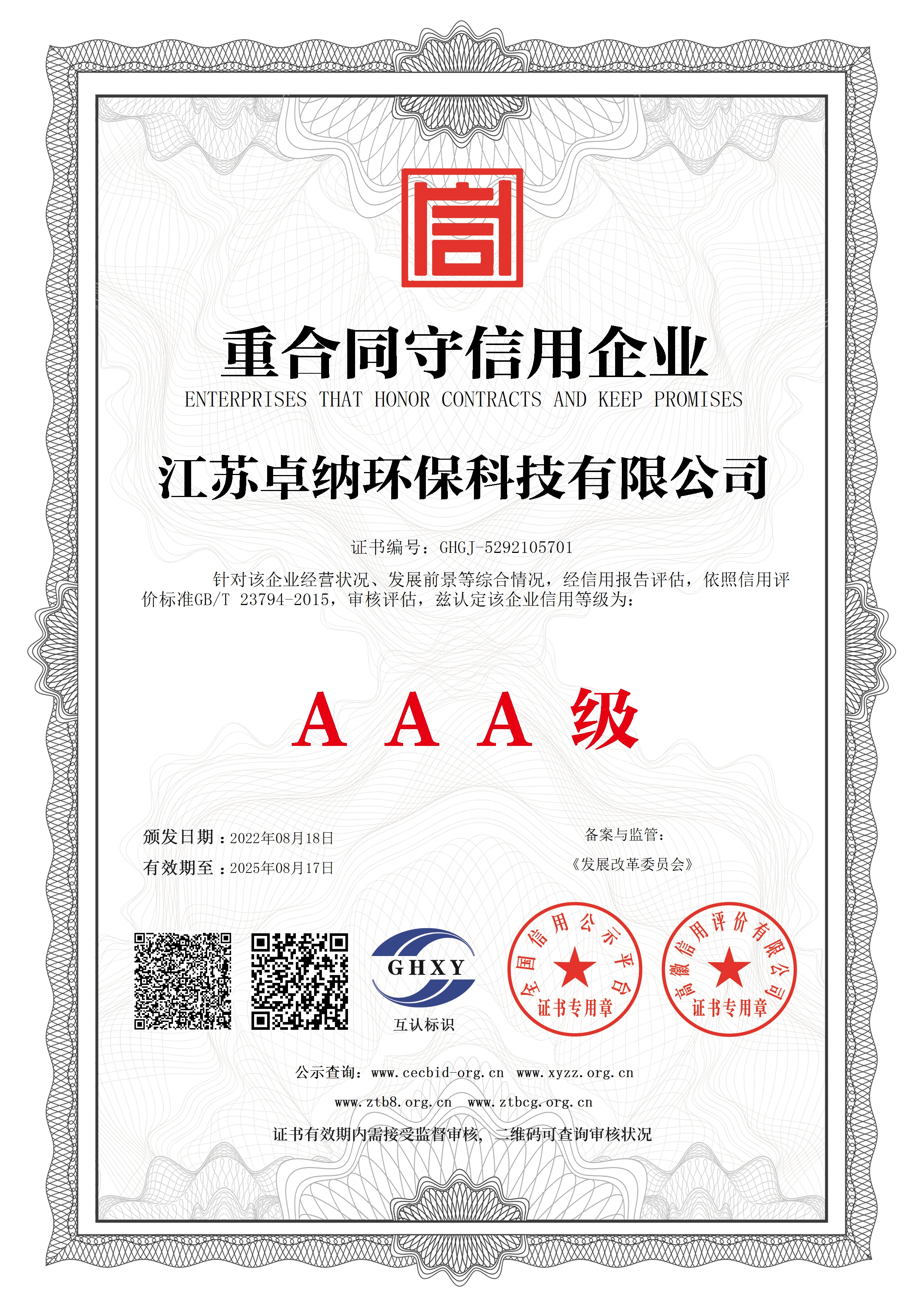 江苏卓纳环保科技有限公司是宜兴国合环境高端装备制造基地内技术型骨干环保企业,公司注册资本金8000万元。是一家专注于工业污(废)水处理行业核心装备制造的高科技环保企业,专业从事环保技术的研发、环保工程成套设备的设计、制造、安装、调试、运营。公司技术力量雄厚,拥有机械、化工、生物、工艺制造、电气自动化、环境治理工程等方面专业设计技术和生产的骨干队伍,并有多年经验的安装、调试、运行及售后服务队伍,可竭诚为合作伙伴提供可靠的服务。